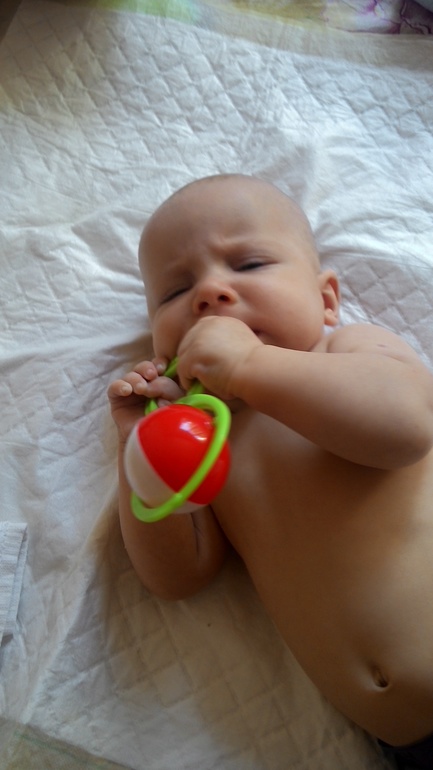 Уже совсем большие и такие интересные))) Серафим любит лежать на животе и голосить, привлекая наше внимание) Лёжа на спине, обожает сосать левую ногу, так забавно смотрится)) Хохочет в голос, особенно, когда папа с ним играет. Естественно все тянет а рот, снизу уже прлсвечиваются зубки, так что ждём)) Любит,когда его крутят на руках и шумно целуют) Всем улыбается, нам улыбок не жалко)Переворачиваемся со спины на живот и обратно, пытаемся ползать, уверенно стоим, если держать за руки и даже шагаем) Во вторник пойдём к педиатру узнаем на сколько подросли) А ещё в воскресение у нас крещение, немного волнюсь,как всё пройдёт...
