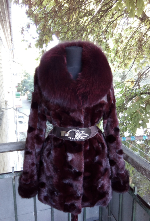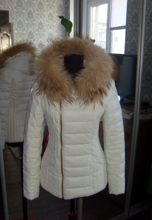 Куртка с капюшоном, мех натуральный (съемный), сидит по фигуре, приталенная. Размер 42-44, так же подойдет на 40-42.