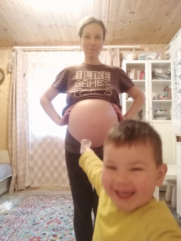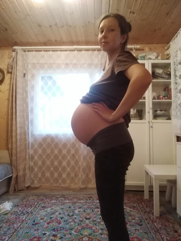 Первый фотопуз, так сказать. Вес пару дней назад намерили 2877г... Это 4 кг к 40 неделям. Как же я рожать буду? 3300, первый, еле-еле. А форма физическая в этот раз гораздо хуже, да и общее состояние не то, поизносилась))