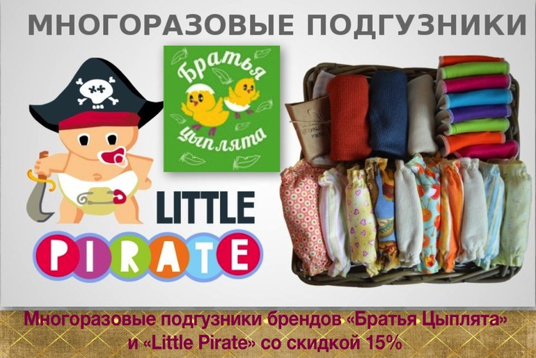 Практичные и экономные мамы! Для вас - скидка 15% на многоразовые подгузники популярных марок «Братья Цыплята» и «Little Pirate»!!!