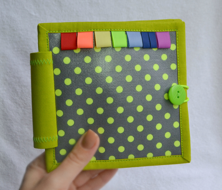 Еще одна книжечка. Обложка такая же - ламинированный хлопок. Размер-14*14 см.