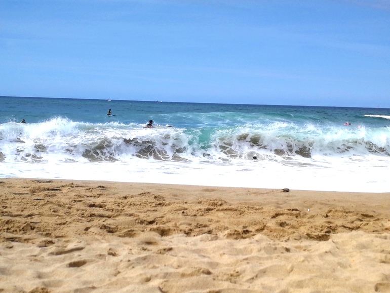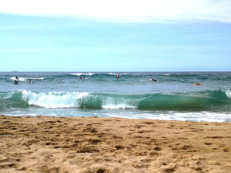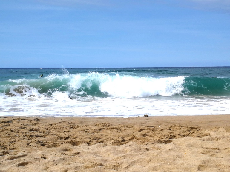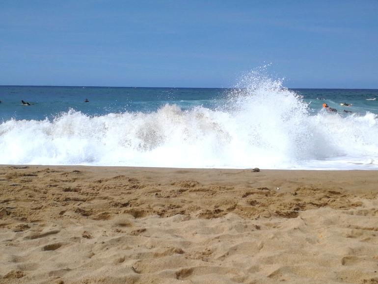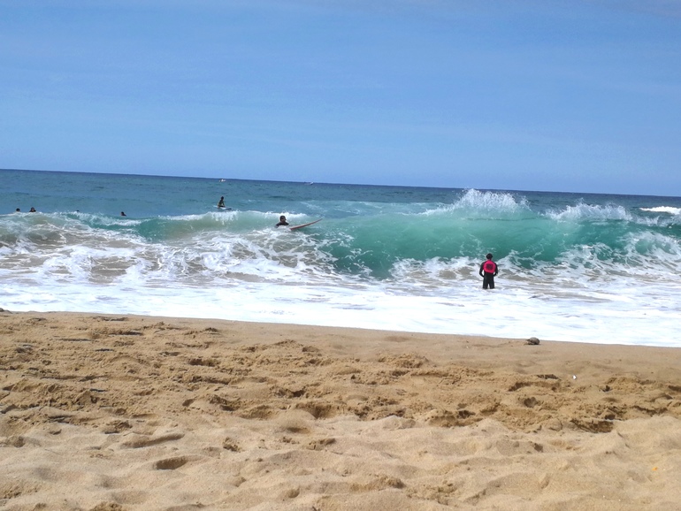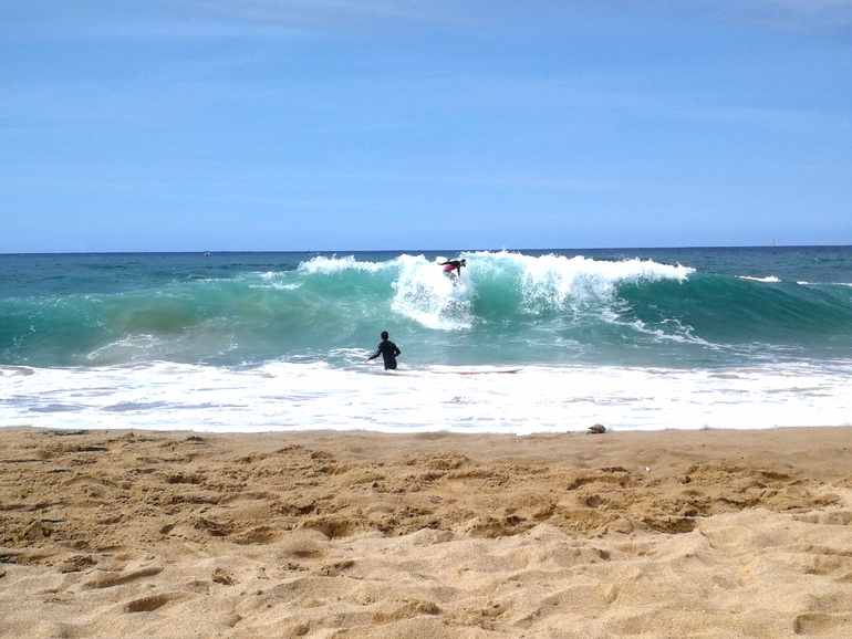 Да на этом пляже часто силтные волны, он считается серферским. В тот день был красный флаг и никто кроме серферов в воду не заходил. Но красиво очень! Да и смотреть как серферы пытаются поймать волну тоже прикольно)))