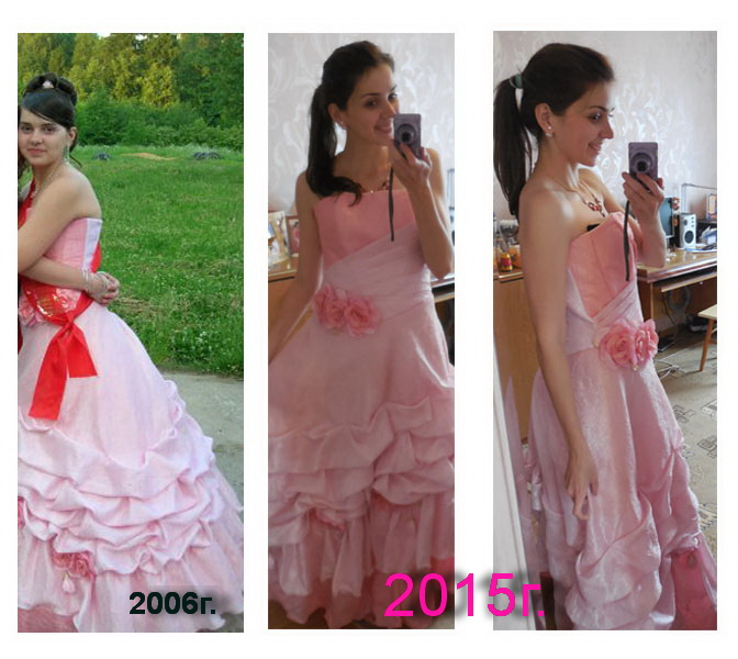 Розовое платье одевала на свадьбу сестры 6 лет назад. Сейчас оно на меня просто огромное, хотя платье невероятно красивое