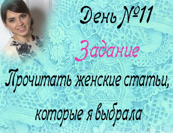 Задание на завтра: дочитать оставшиеся статьи, а так же найти статьи о женской ценности