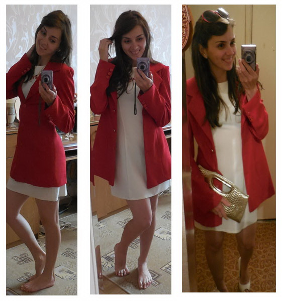 Всё началось с того, что я приехала вчера к родителям и мама сказала, чтобы я примеры костюм сестры, вдруг он мне подойдет и я его буду носить:). Костюм: платье и длинный жакет, как я люблю:) Этому костюму 13 лет:) Сестра его носила в школе, а я в свои 12 лет не могла подумать о том, чтобы влезть в него