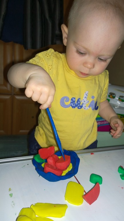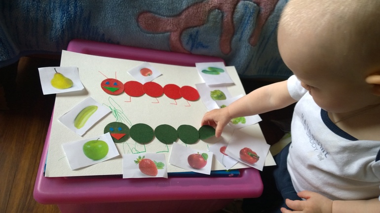 Делали задание: найди пару морских звезд по цвету и соедини их (размалевала там весь листок; но пары показывала).