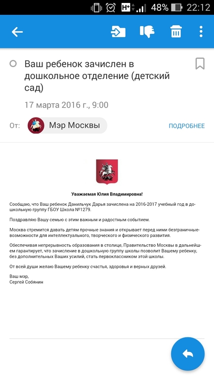 Получили в итоге место на целый день. Неделю ходим в новый сад)))