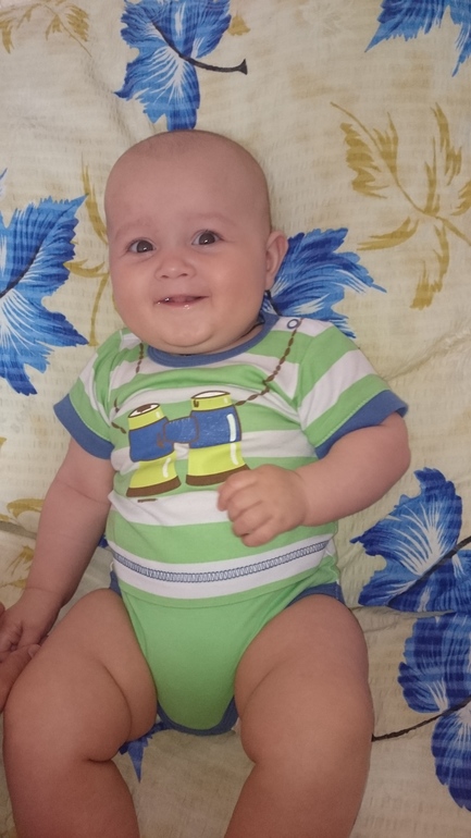 Побывали мы у врача...Вес у нас теперь 8кг при росте 67см...Растем очень хорошо....Ввела ему прикорм,очень любит кабачок и фруктовое пюре.практически самостоятельно сидит,а вот ползать почему-то отказывается.и пока не очень переворачивается.