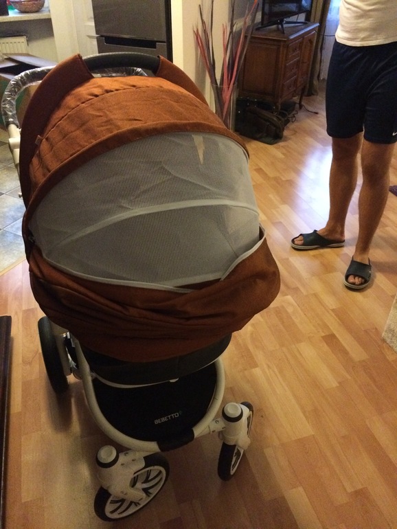 Коляску выбирали долго. В итоге остановились на Bebetto Torino. И внешне она нам понравилась, и много на улице мамочек с такой коляской встречали, спрашивали мнение, да и сервис. Все же коляска польская, с сервисом проблем не будет, если что. Материал: ткань и эко кожа.