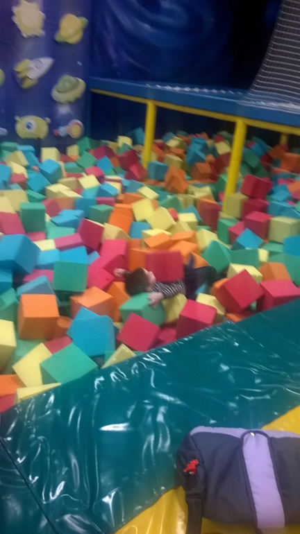 .Витя в мягких кубиках-)очень понравилось туда прыгать))