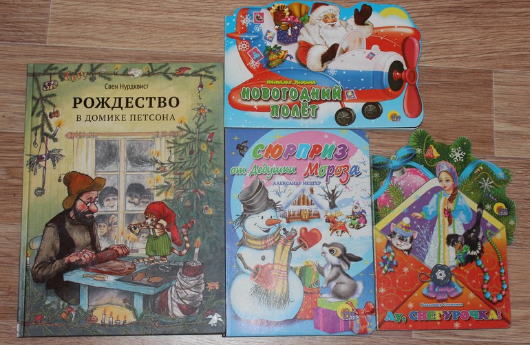 2. Небольшая книжка-картонка с новогодними стихами. Приятные и добрые иллюстрации радуют глаз. Больше всего сыну запала в душу сцена, где Дед Мороз побывал в тёплых странах и ребёнок до сих пор сочувствует дедушке: «ему же там было жарко, нужно было сверху подарки сбрасывать»