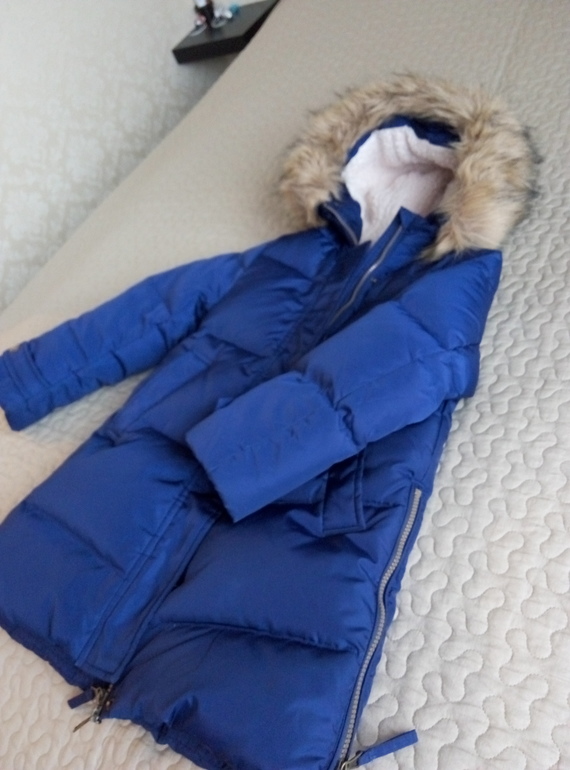 Продам зимнее пальто на девочку. На этикетке указан размер 6. По спинке 63см, рукав 44см. В илеальном состоянии. Наполнитель пух-перо. Красивая синяя ткань с переливами.Отдам за 2000