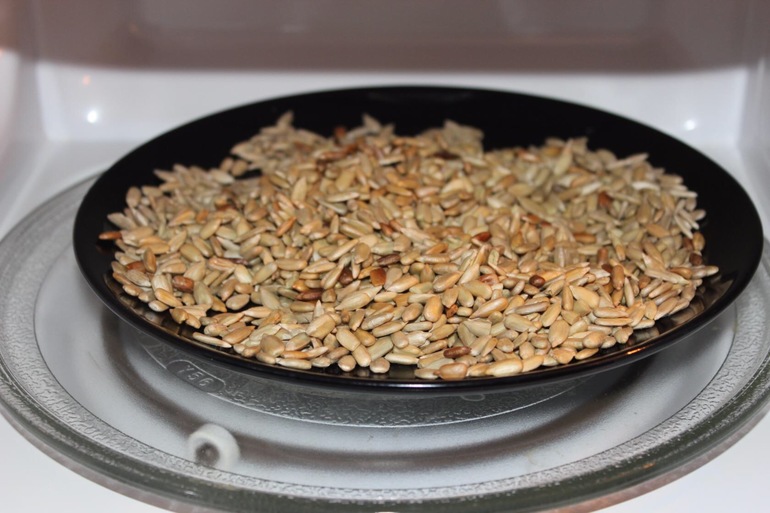 Семечки я жарила в микроволновке 3 минуты, помешивая через каждую минуту