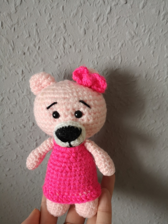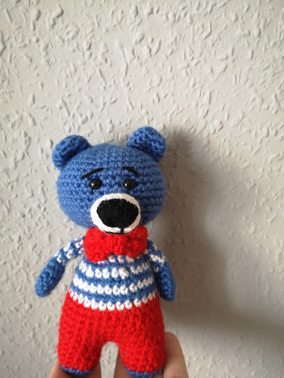 Мишек вязала в подарок из акриловый пряжи, так, что скоро они поедут в новый дом,