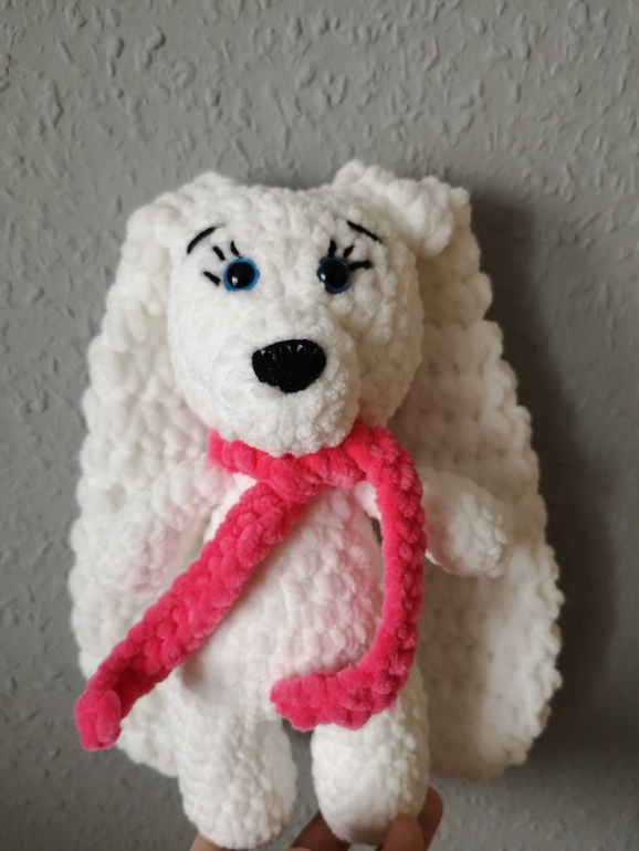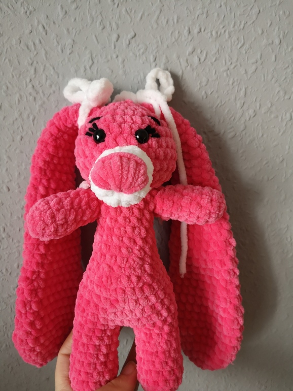 а зайчики из плюшевой пряжи. Как же мне понравилось вязать из этой пряжи, немного сложнее, чем из хлопка или акрила, но столько удовольствия😀. Она мягкая и скользит хорошо на крючке, а какие зайцы "воздушные". На очереди единорожка из этой же пряжи, а пока довязываю лошадь из акрила.