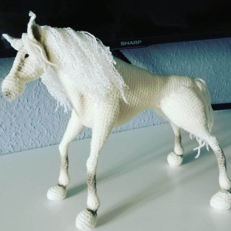 Эта первая игрушка , такого типа, у меня! Мне очень понравилось её вязать, теперь хочу такого же единорога!