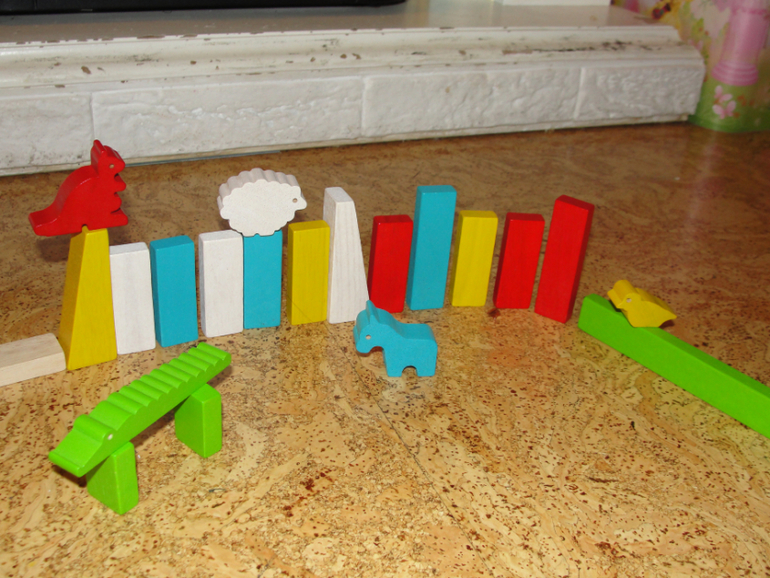 С помощью прямоугольных деталей и ярких фигурок птичек малыш должен построить разноцветное дерево с сидящими на нем птичками. Игра заканчивается, если дерево падает.