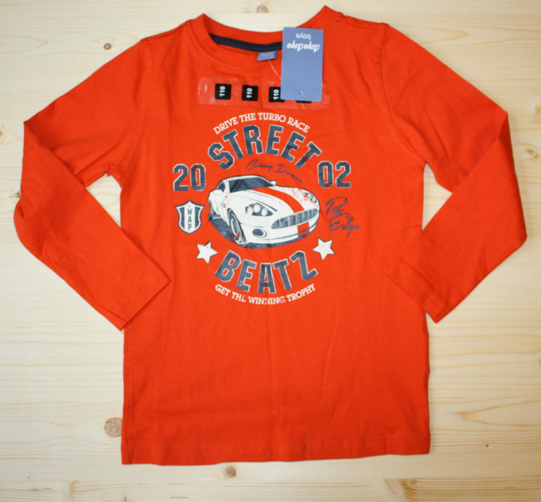 525. Футболка с длинными рукавами Kiabi на 5 лет, на рост 108-113 см. 320 рублей.