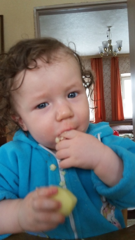 Кушаем 3раза еду по 250-300г не считая сока, кефира и печенья, и 3раза по 210г смеси ночью. И еще ныряем в мамину тарелку. Правда с мамой тоже делимся щедро.