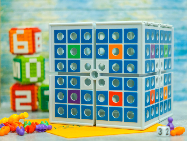 Раньше я считала самой необычной нашей настолкой ту, элементы которой нужно в процессе игры на уши себе вешать. Но игровое поле в в формате 3D, которое ещё и вращать приходится, одержало победу! Это игра под названием "Царь Куба":