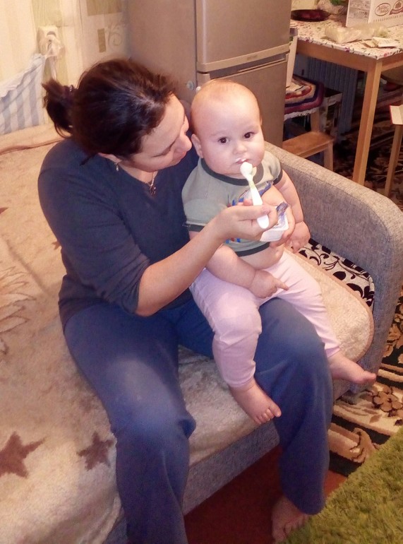 Сегодня кормила Мишу, и вспомнила, что когда то я точно также кормила Владу. Смотрите как похоже)))