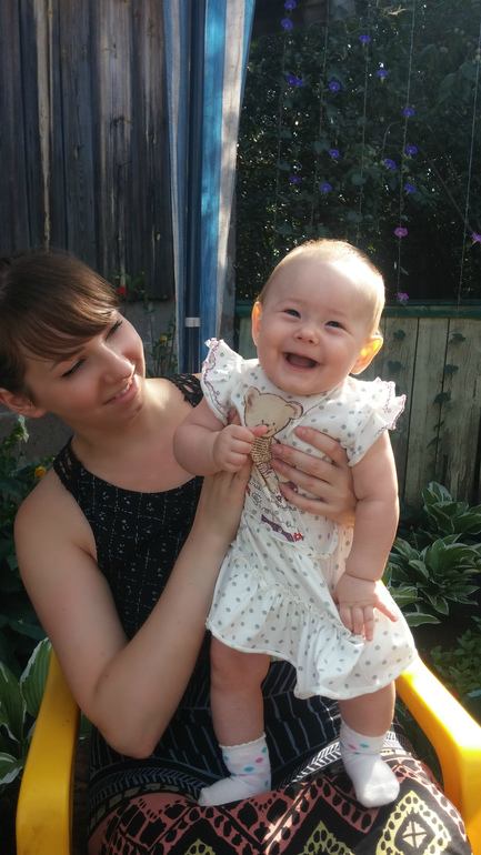 7-го августа Ясмине исполнилось 7 месяцев! Мда... А еще говорят, что чужие дети быстро растут😄 Моя умница и красавица с пронзительно синими глазами😍 Ползает назад гусеничным стилем, не понимает отчего желанный предмет становится дальше от нее, ведь она прилагает столько усилий))) В ванночке купашки сменились плескашками и стояшками. Колотит по воде ручками, что есть сил. Купающий дочь папа, соответсвенно, тоже купается верхней половиной тела, которая не спрятана самой ванной😁😁 Воды не боится совершенно! Крутится во все стороны, переворачивается в папиных руках на живот и тут же встает, хватается за кран или шампуньки и хохочет))))) Освоила звук под кодовым названием "муха" - начиная с бвввв как-то поджимает губёшки и получается этот "полёт мухи". Если при этом Яся кушает кашу или овощи, то это уже повод для мамы купаться верхней половиной тела, ибо ходить мне в засохших ошмётках еды не камильфо! Раскачивается вперед-назад на четвереньках. Сидит с прямой спинкой только у меня на коленях. Сама не садится, садишь - падает. Зубов нет)))) У педиатра были, хотели ставить прививки - а там очередь чуть не на улицу торчит, придется на будущей неделе делать еще попытку. Вес 7800 гр. рост 65 см, расти не торопится, а мы и не против. Много улыбается, много говорит, смеется, интересуется всем миром - как я в ее возрасте)))) И платишко, что нам папа подарил на 7 месяцев😊