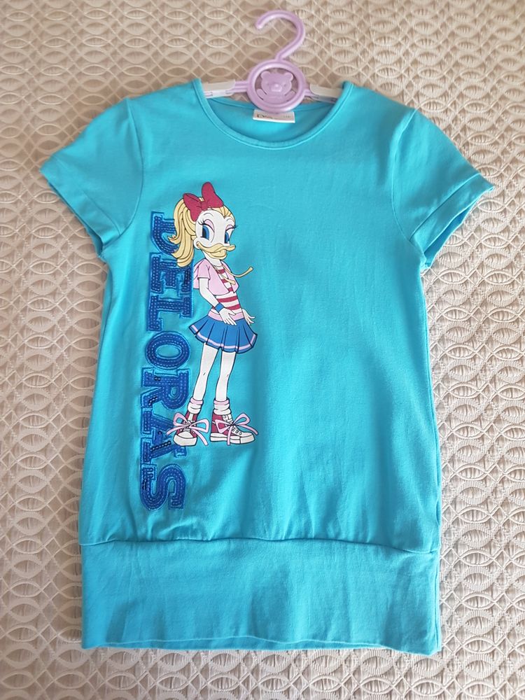 29. Новая футболочка на 134. переобменяю, дочка не оценила принт :(( Вся в стразиках, красивая. Экв 1400 как и был.