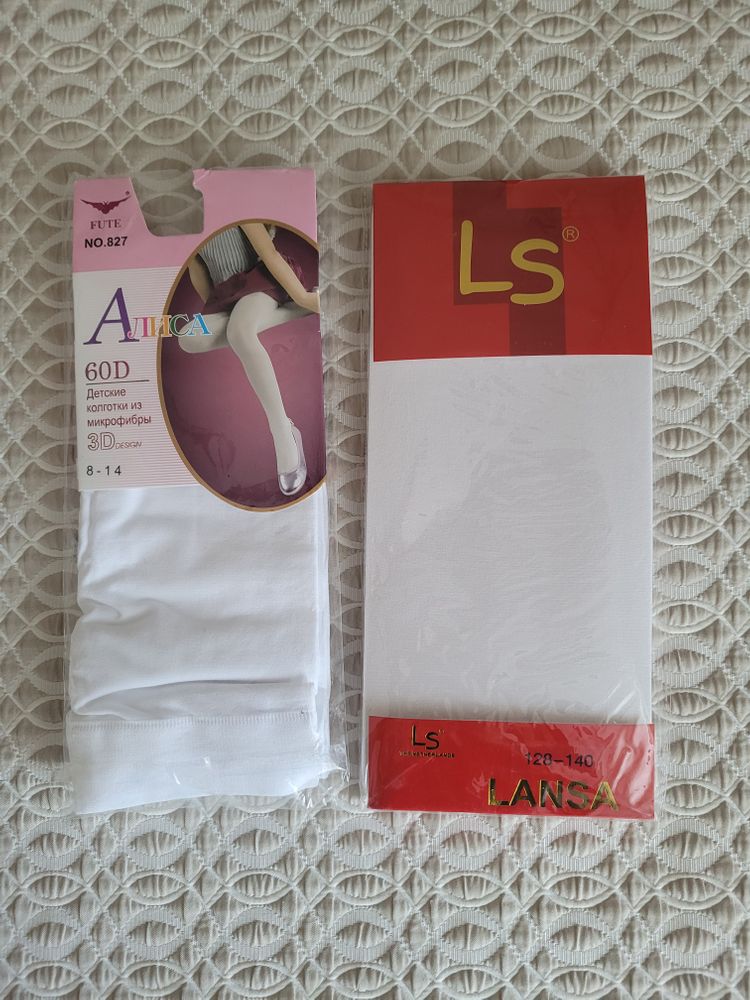 36. Белые колготочки новые. На 134 впритык оказались. По 300 руб.