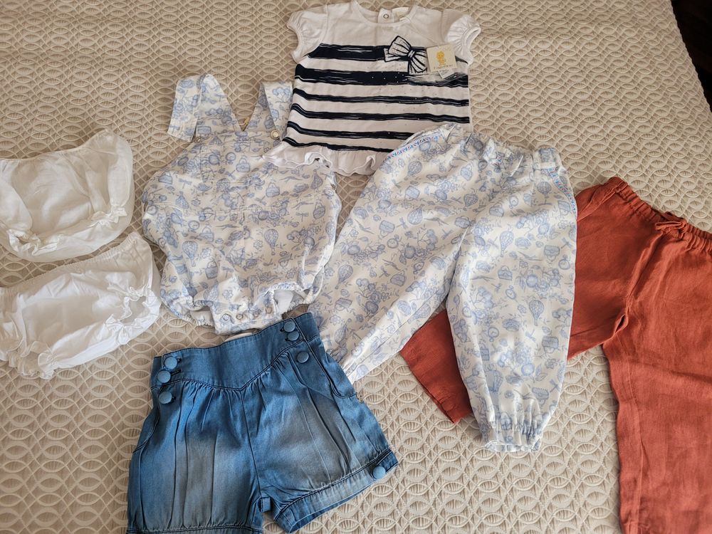 1. Новые вещи на малышку. Слева трусики на памперс с платьем носить на 12 мес примерно по 500 руб.