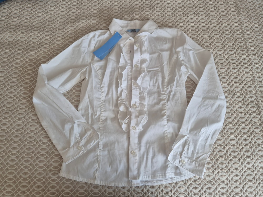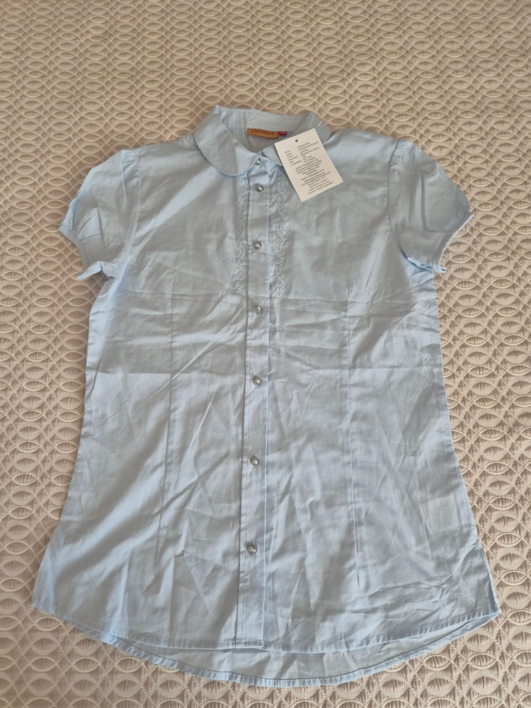 53. Новая блузка. Переобмен. В новой школе у дочки не нужна школьная форма. Размер 146, но скорее на 152. Экв 2500 вроде был.