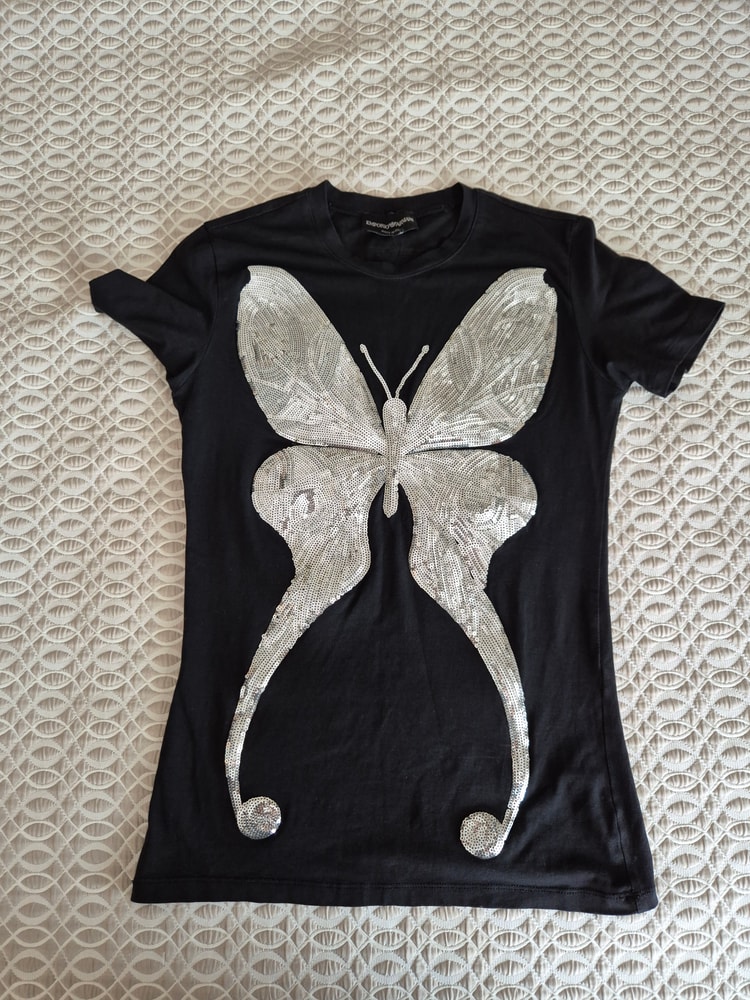 44. Футболочка переобмен Dsquared оригинал. Бирок нет, н окажется как новую меняла. Размер 10, но скорее все таки на 9. Худенькой. Экв вроде 2000 руб был.