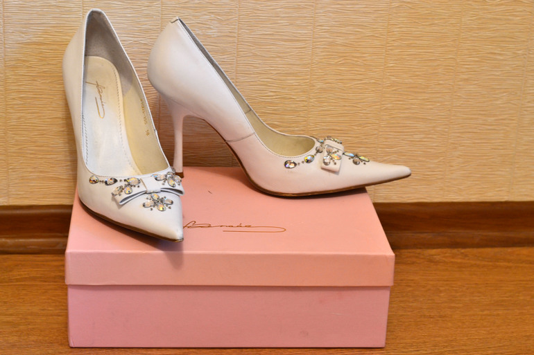 Fiancee в идеальном состоянии, в коробке. Одеты один раз понятно куда. Каблук - шпилька 10 см. Натуральная кожа, очень красивые стразы, удобная колодка, на ноге смотрятся шикарно.