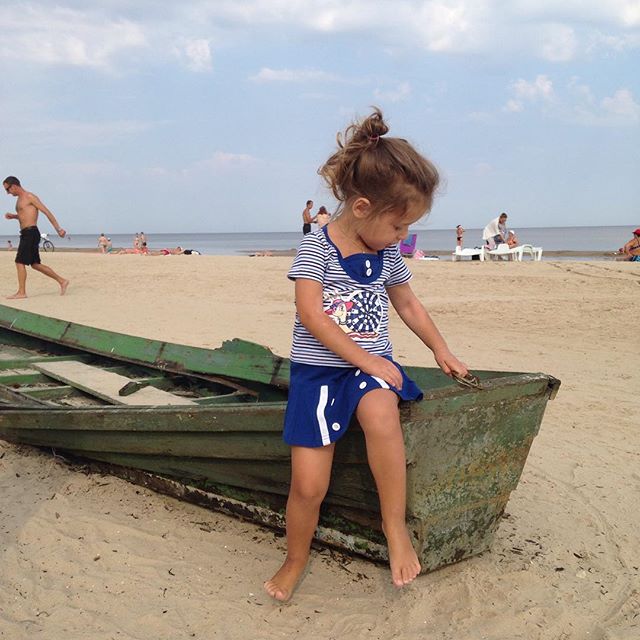 Доброго утра! Ну и гроза в нас была ночью!! честно признаюсь, это первая такая гроза на моей памяти вообще. Молнии не прекращались ни на минуту почти час! И, если честно, страшновато было. Вроде в большом городе чувствуешь больше защиты от них чем здесь Фото вчерашнее, моя морячка. Еще в июле привезли к кафе эту разбитую лодку, сейчас ее разбили еще больше #нашиюрмальскиеканикулы