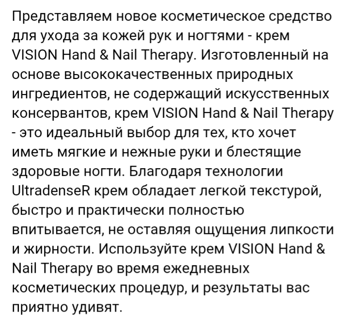 Косметический продукт ежедневного применения для интенсивного ухода за ногтями и кожей рук!