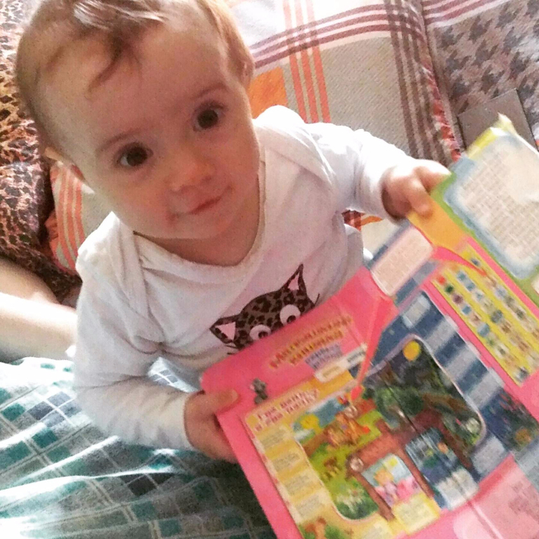 Любилки (то, что очень-очень нравится или кто). Обожает Марка, каждое утро будит его в школу, встречает и сильно ему радуется. Обожает играть в коника, чтобы ее покатали на шее, уже поглядывает на нашего кота, хочет что-то ему повыдирать. В ванне уже ей тоже спокойно не сидится, там тоже скачет. Любит ходить в гости (у нас сосед 5 лет и соседка 15 лет). Уже и в коляске скачет, нужно переходить на прогулочный вариант😊. Короче, любим очень скакать!!!