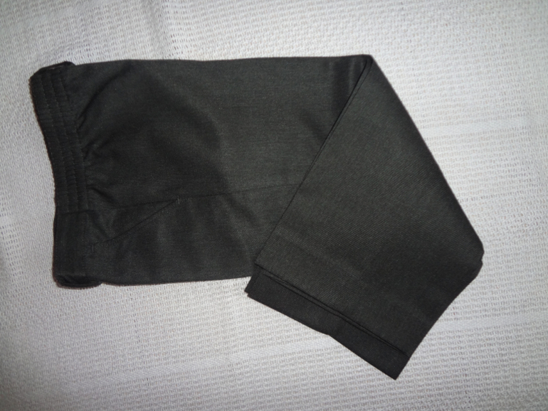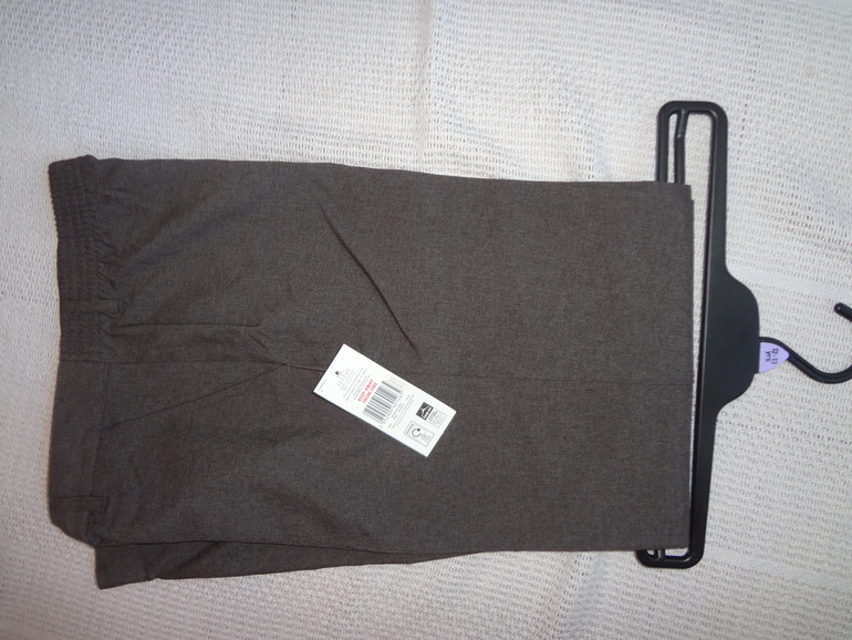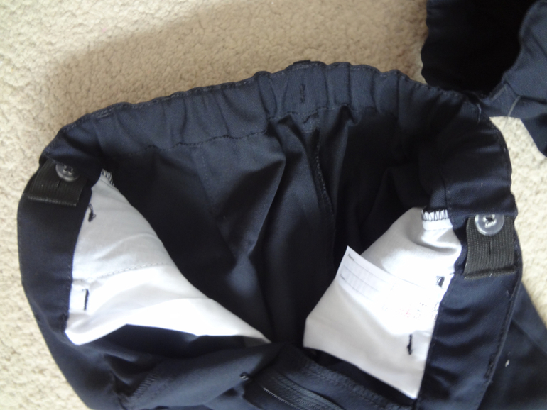 брюки. в Англии продаются комплектом их 2, поэтому этикетка на одних брюках. Фирма FF. С утяжкой с двух сторон. С 2 боковыми карманами. На молнии спереди. С улучшенной технологией и тефлоновой защитой от пятен. На коленях с усиленной защитой от протирания. Стираются в машинке. Не мнутся.