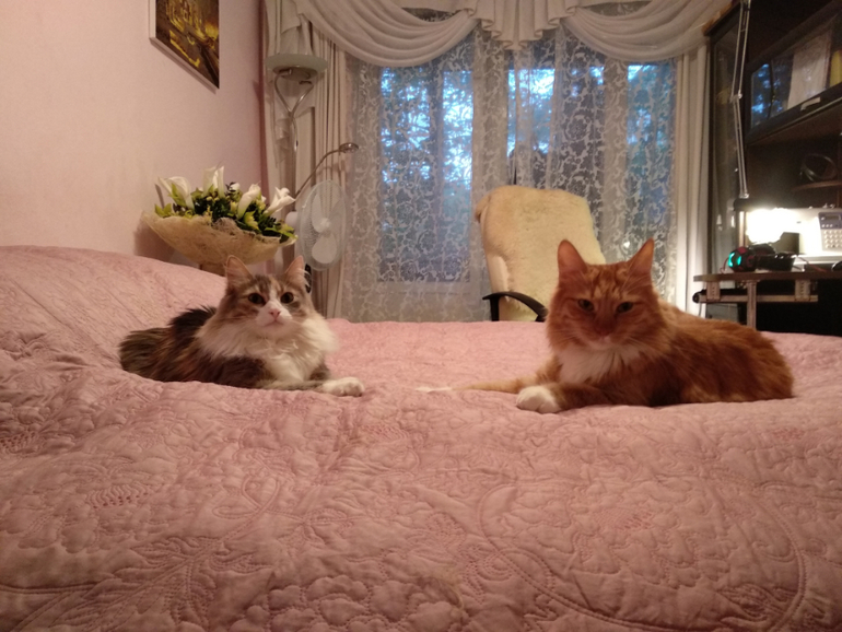 Когда коты осознали что новое огромное пуховое одеяло из верблюжьей шерсти и гигантские бамбуковые подушки - это хорошо.