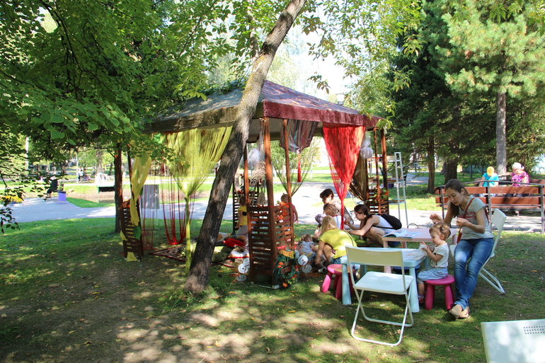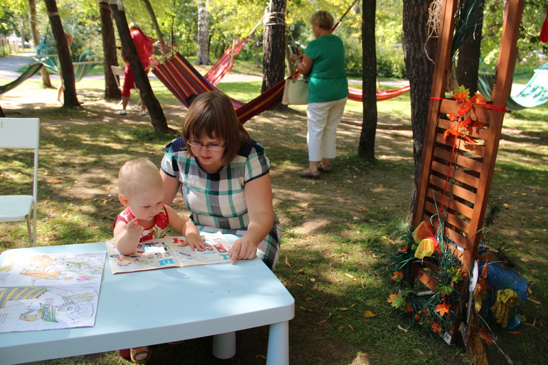 Семейный досугПрям гордость берет за Томск - в нашем городском парке есть читалка в гамаках!