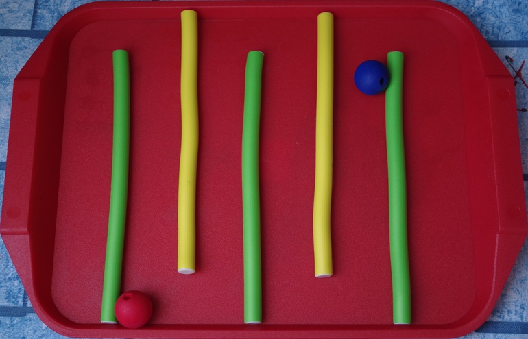 Можно не только гонять шарики, но и сортировать разные мелкие предметы по цветам: