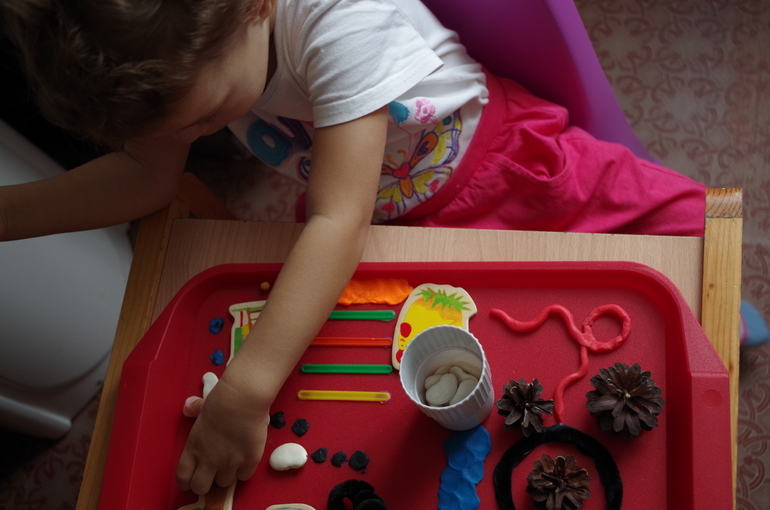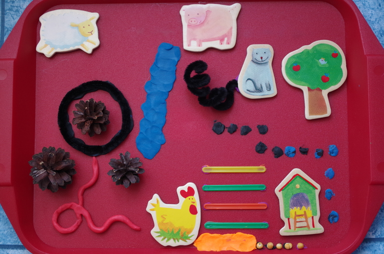 3. Небольшой рассказ на подносе. Идею нашла в дневнике Светланы. Я только немного добавила своего и некоторую часть "дорожек" мы делали вместе с дочей.