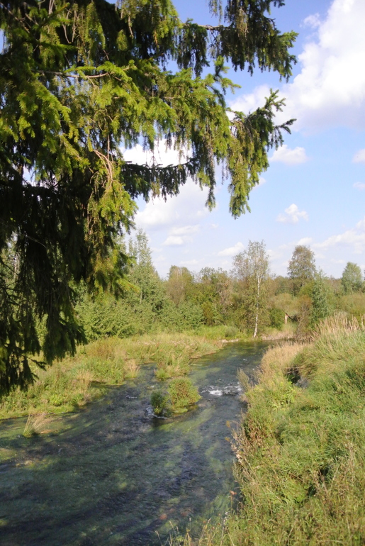 На днях съездили к новым знакомым. Они там живут в домике и летом, и зимой. Неподалёку есть речка, и мы туда отправились большой компанией. Было в меру жарко, а вода в речке прозрачная-прозрачная! и холоднющая! Такая, что через секунд десять стояния в ней ногами по щиколотку, их начинает сводить.