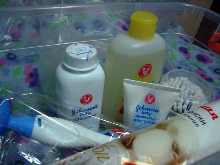 Начала с простого - косметики: пенка, мыло, присыпка, крем. Потом добралась до ершика и градусника. Купила ящик для будущей детской аптечки и начала его заполнять, пока правда ватными палочками и тампончиками.