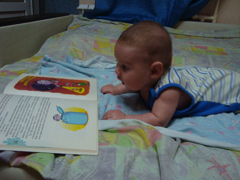 5. Увлекается чтением, за что получил среди родных прозвище "профессор". Начали с "Петьки-микроба" Г. Остера. Иногда читаю ему вслух Кафку. Леве нравится.