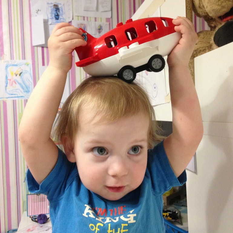 Я не знаю откуда (Марк летал на самолете год назад, вряд ли что-либо запомнил и понял), но сын стал играть в ситуацию взлета самолета. Для меня действительно загадка. Интуитивно догадался. Интересный факт.
