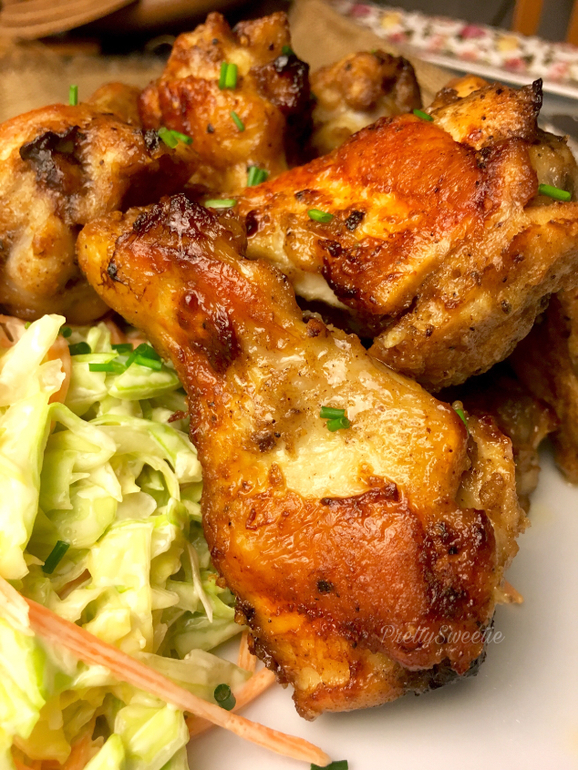 Для ленивых рецепт, или для тех, кому в лом в магазин ехать. Соус, в котором мариновала, прекрасно подойдёт и других запчастей от курицы, и даже целую можно обмазать. Хрустящая корочка гарантирована. Сбить легкую остроту помогает салатик (один из разновидностей coleslaw , рецептов его куча).