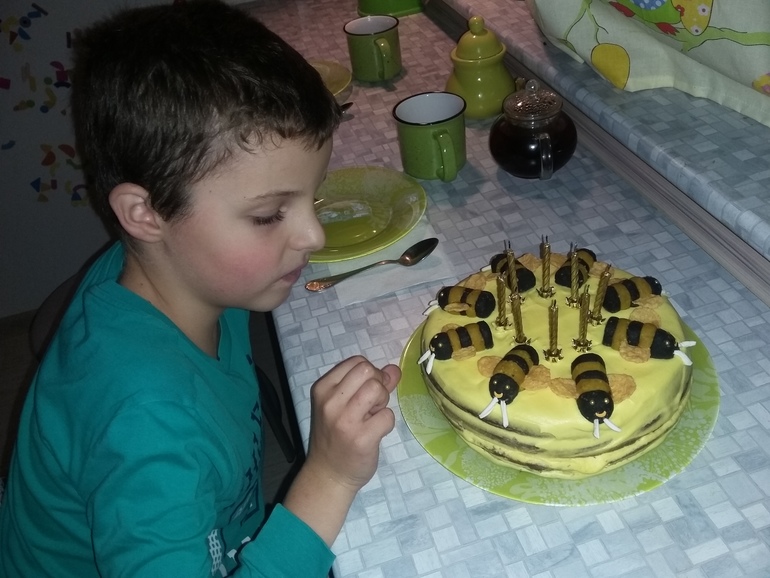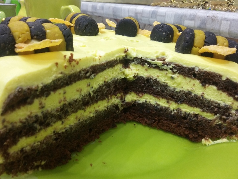 На свой день рождения внук попросил испечь торт "Пчёлка" (наверное потому что пчелы постоянно ко мне на кухню залетают).
