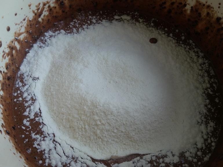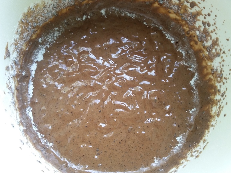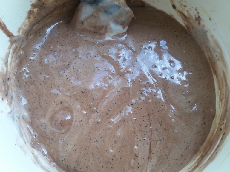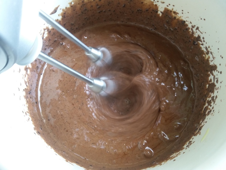 50 г какао залить 100 мл кипятка, перемешать до однородности, остудить: