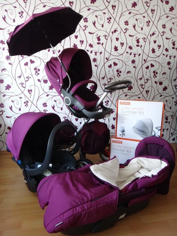 В идеальном состоянии, люлька, прогулочный блок, автокресло, футмуфт, зимний кит, летний кит, вкладка для младенца, сумка для мамы, зонт.