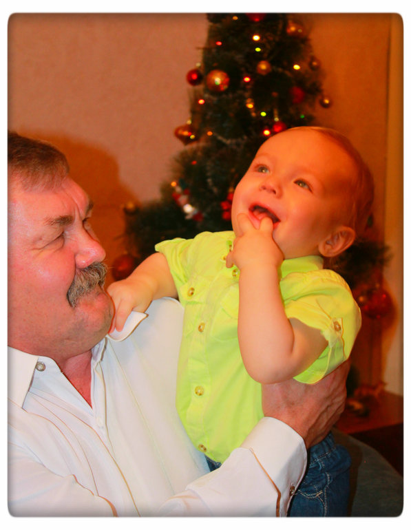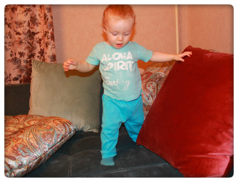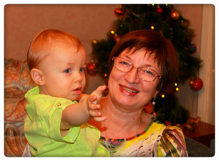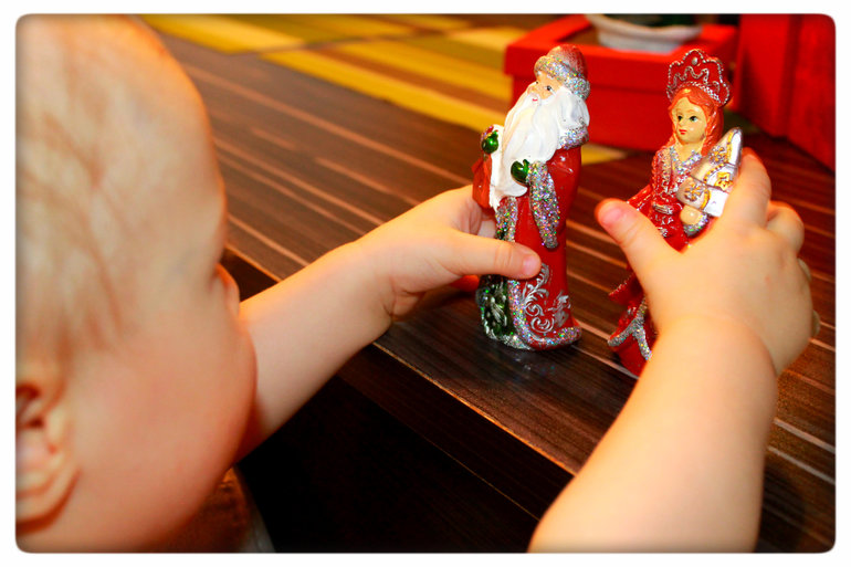 Владику был явно интересен этот процесс, но я подумала что для печенья он ещё слишком мал. Может быть на следующий год))). А на сам новый год мы укатили в Краснотурьинск к дедушке и бабушке. Папа мой очень ждал внука, даже ёлку не стал наряжать, хотел с внуком вместе)))). А Владик был увлечен изучением нового пространства и охотой за мандаринами, бесился в подушках на большом бабушкеном диване и дедушке практически не помогал