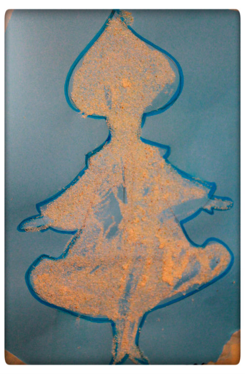 Владик сначала старательно разбрасывал манку вокруг листа и на лист, а потом решил попробовать всё это дело на вкус. Для себя я отметила, что в следующий раз я буду делать клестер, а не использовать пва. Кстати это наш первый опыт данного творчества)))). Мои старания даром не прошли и к концу дня сынуля называл снегурочку гугука.))